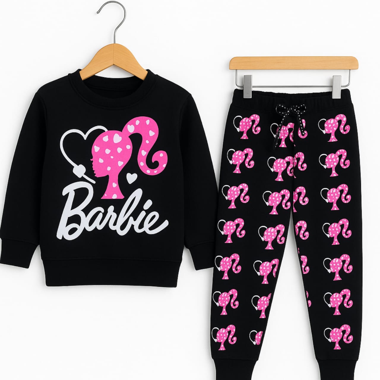 Barbie Black Tracksuit Set for Girls cotton Fleece Fabric (2 to 11 year)